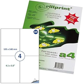 Rillprint Étiquettes auto-adhésives | 400 étiquettes | 105 x 148 mm | 4 étiquettes imprimables par feuille A4 |Expédition, prix étiquette collante pour imprimante à jet d'encre et laser
