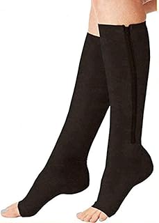 Lot de 2 paires de chaussettes de compression avec fermeture éclair et fermeture éclair pour genoux, unisexe