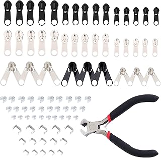 HSEAMALL Kit de réparation de fermeture éclair 85 pièces, tête de fermeture éclair avec pince d'installation, pièces de rechange universelles, fermeture éclair en métal.