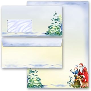 Set complet de 20 pièces SAISON D'HIVER (variante A) 10 feuilles de papier à lettres et 10 enveloppes DIN LONG sans fenêtre