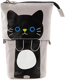 Trousse à Crayons Télescopique en Toile Durable, 2 Pièces Sac Debout Porte-Stylo Sac Crayon Toile PU Dessin Animé Chat Mignon Organisateur de Crayon Télescopique Pochette Cosmétique